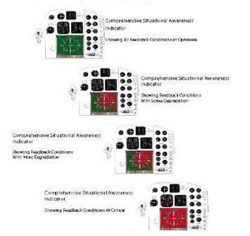 One of the 1st identified uses for TransLumen’s v-INDICATOR™ was in the aviation/aerospace industry. The v-INDICATOR™ can help display cockpit and air-traffic control related data more clearly and use less screen/dial/gauge real estate. It also mitigates visual noise problems through clutter, transience and saccade reduction. The display below shows an early version of the v-INDICATOR™ called the Visual Cue Feedback Indicator. The v-INDICATOR™ can be used to aggregate data using various visual indicators. Touch screen technology can also be utilized to assist pilots/controllers in addressing situations that may be increasing in severity. TransLumen revolutionary human machine interface. Click for Audio / Video Clip