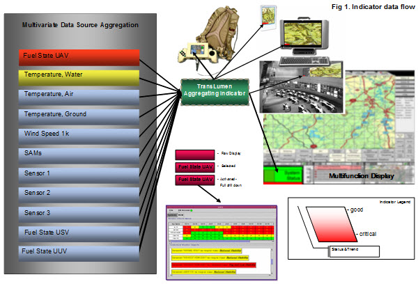 In 2006, TransLumen received one of the State of Illinois’ Department of Commerce and Economic Opportunities’ Innovative Product grants for the v-INDICATOR™ as a homeland security tool. From the first prototypes to the development of working systems and products, the v-INDICATOR™ has been explored as a tool that can be deployed by both centralized and de-centralized operations. The v-INDICATOR™ can be used as an intelligence tool on land, in the air or on the seas as part of a command - control center or on a PC, a laptop, a small mobile device or even embedded into a combat/haz-mat uniform. Defense industry members are helping TransLumen explore and develop an infinite array of v-INDICATOR™ applications that will allow users to quickly and accurately analyze mission - critical situations on a 24-hour basis.